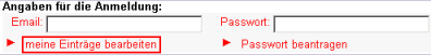 Durch Angabe von E-Mail-Adresse und Passwort können Einträge
